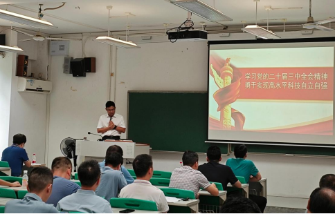 学院党委书记、执行院长任斌进行领学并宣讲,他表示,要深刻领会全会精神,把全会精神转化为推动工作的强大动力,要团结一致,在教学和科研工作中积极创新,励精图治,以强烈的责任担当贯彻落实好党的二十届三中全会精神,把学习贯彻全会精神与做好当前工作紧密结合起来,用全会精神统一思想、指导实践、推动改革,全面提升学院治理能力,推动学院教育教学与科研工作再上新台阶,为学院建设发展进一步凝聚思想共识、注入强劲动力。