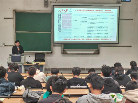 课堂上,任斌结合华为海思、中芯国际等企业突破技术封锁的案例,阐释了产学研协同创新的重要性,呼吁学生拓宽国际视野的同时,坚守科技报国的初心。