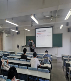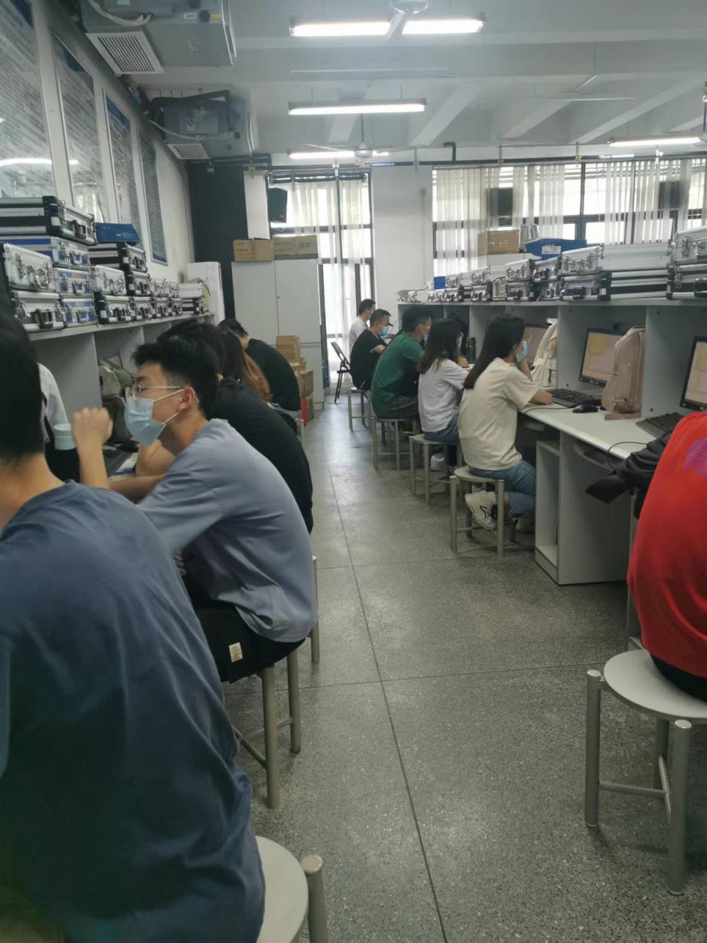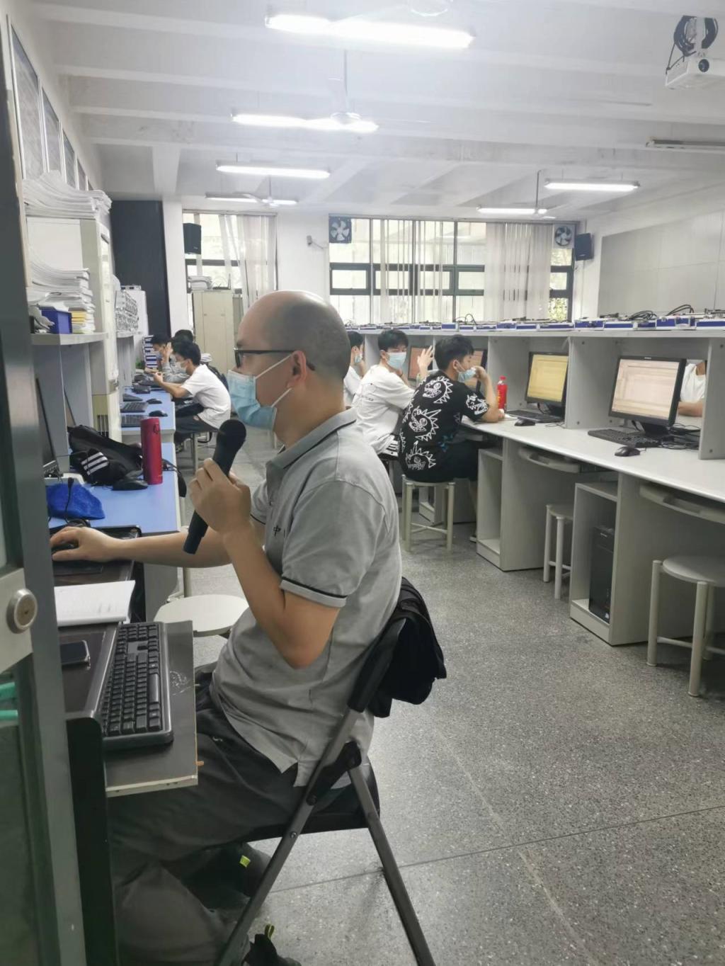 2022年5月17号早上,本学期线下上课第一天,球天下体育 卢贵主副院长带领微电子系与电子系主任对开学第一次线下教学进行了考察,授课教师很早到位,一切上课工作都准备就绪。老师和同学们都佩戴口罩,做好了防疫措施。线下线上混合教学秩序良好,尽管6c405电脑显示屏黑屏,授课老师结合板书依然正常授课。