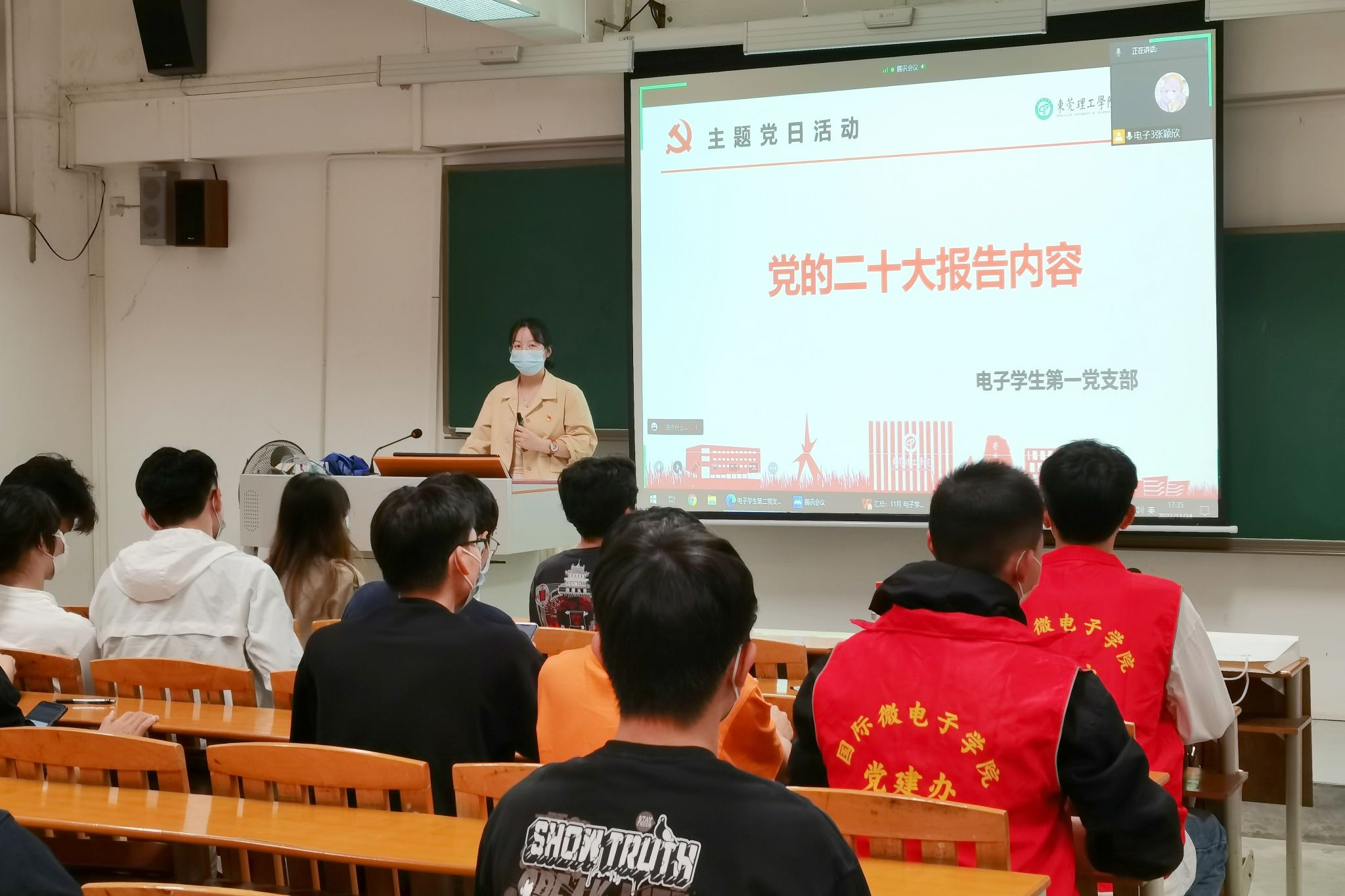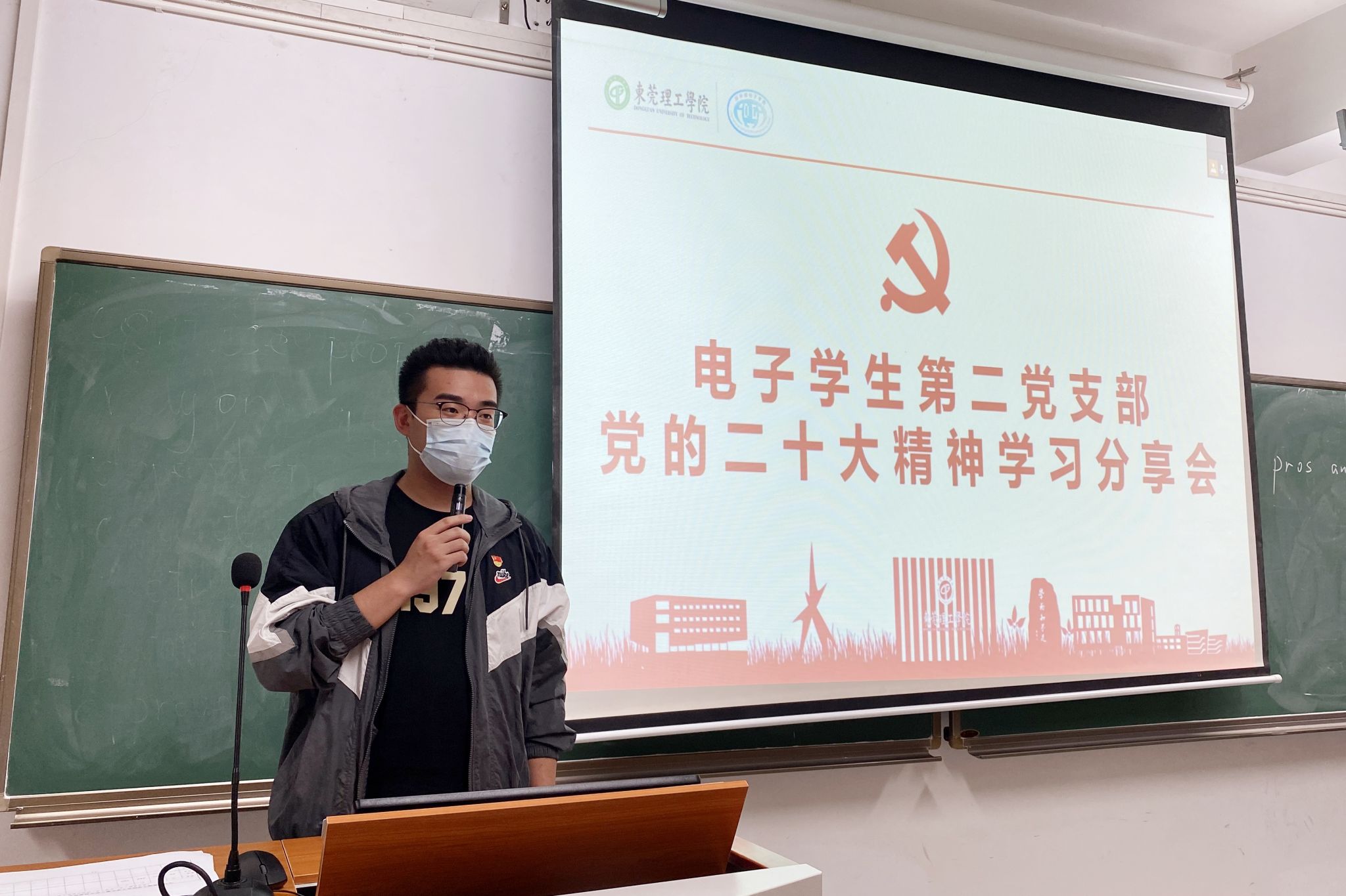 学生第一、第二党支部开展“学习党的二十大精神”主题党日活动,由学生第一、第二党支部书记陈亚莉老师和贾彬老师主讲。学生第一党支部书记陈亚莉表示,深入学习贯彻党的二十大精神是当前和今后一个时期的首要任务。当代青年要深刻领悟二十大精神,要有理想、敢担当、能吃苦、肯奋斗;要志存高远,也要精益求精,做好每一件事,完成好每一项任务;要勤于修身,做到崇德向善有我,树立和践行社会主义核心价值观,赓续红色血脉,传承红色基因;要争先担当,努力掌握科学知识,练就过硬本领,在祖国需要的地方建功立业,实现人生梦想。