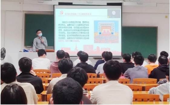 学生第二党支部书记贾彬老师为同学们讲解了党的二十大报告的丰富内涵。他强调,党的二十大报告思想博大、内涵丰富,鼓舞人心、催人奋进,是指导全面建设社会主义现代化国家、向第二个百年奋斗目标进军的纲领性文献。贾彬老师从“培养担当民族复兴大任的时代新青年”这一主题对青年骨干提出了四点要求:一是以理想点亮前进方向,做不平凡的新时代好青年;二是以担当彰显初心使命,做负责任的新时代好青年;三是以吃苦锤炼意志本领,做有实力的新时代好青年;四是以奋斗展现青春风采,做有活力的新时代好青年。