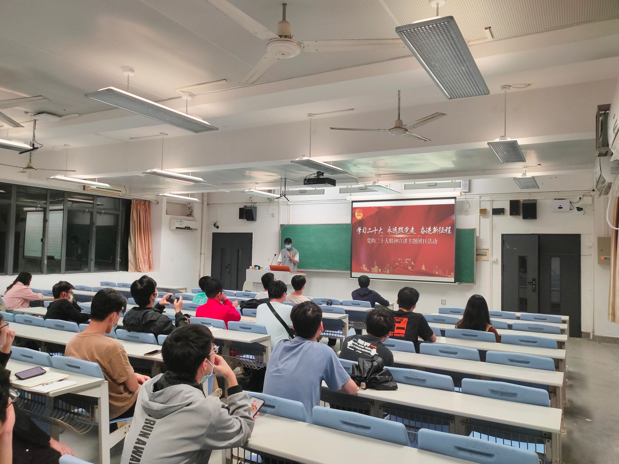 学生第一、第二党支部开展“书记讲党课”活动,活动主题为:学习党的二十大报告精神——做奋进自律,发挥模范作用的青年。由学院党委副书记翁炎泉主讲。翁炎泉主要从深刻认识党的二十大的重要意义、从“1到9”学习党的二十大精神、做奋进自律发挥作用的模范青年三个方面进行讲授。翁炎泉结合学生党员日常学习生活实际,深入浅出讲授党的二十大精神内涵。他表示,党的二十大报告主题鲜明、思想深邃、内涵丰富。党的二十大报告全面总结了过去五年工作和新时代十年伟大变革,以高远站位擘画未来发展,从战略全局上对党和国家事业作出规划部署,是全党迈向第二个百年奋斗目标新征程、奋力谱写全面建设社会主义现代化国家、全面推进中华民族伟大复兴的宣言书、动员令和行动指南。学生党员们纷纷表示,新时代赋予了青年新的责任与使命,他们将认真学习宣传贯彻党的二十大精神,坚定不移听从党的号召,做奋进自律的模范青年。