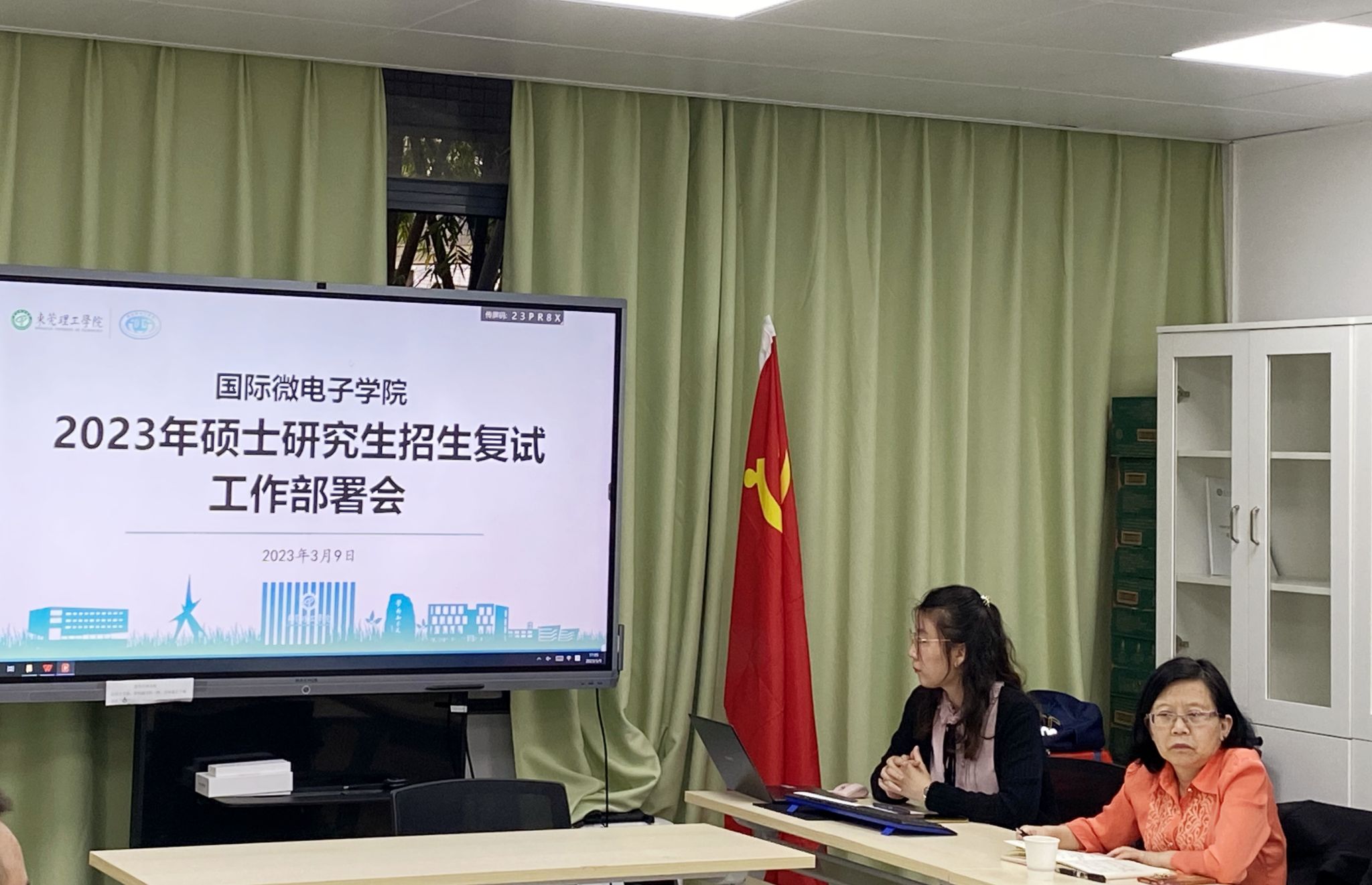 学院研究生招生负责老师逯瑶传达了学校2023年研究生招生录取工作布置会的相关文件精神和进度安排。
