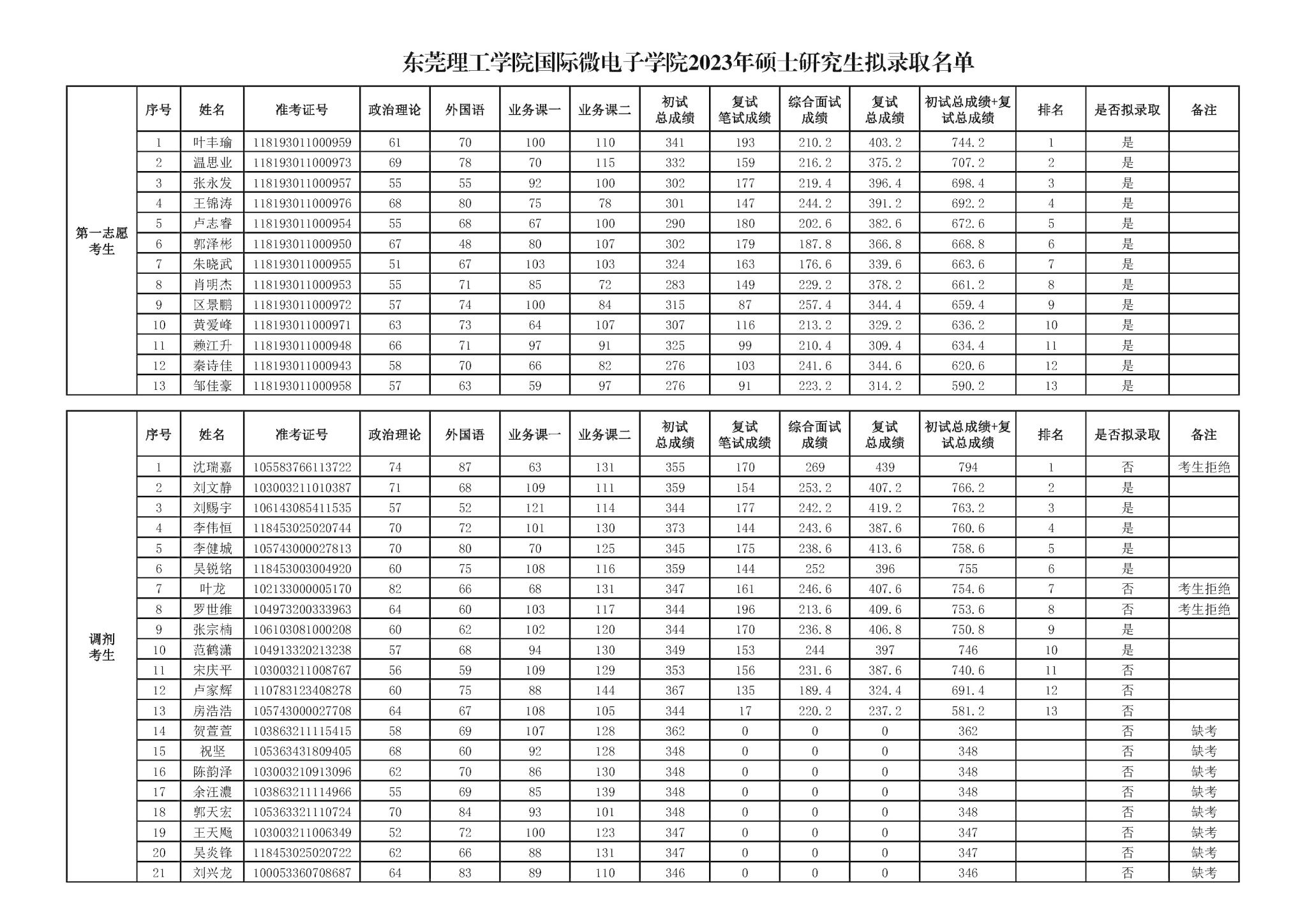 经2023年4月9日复试考核,结合考生初试成绩,东莞理工学院球天下体育 2023年硕士研究生拟录取名单现公布如下: