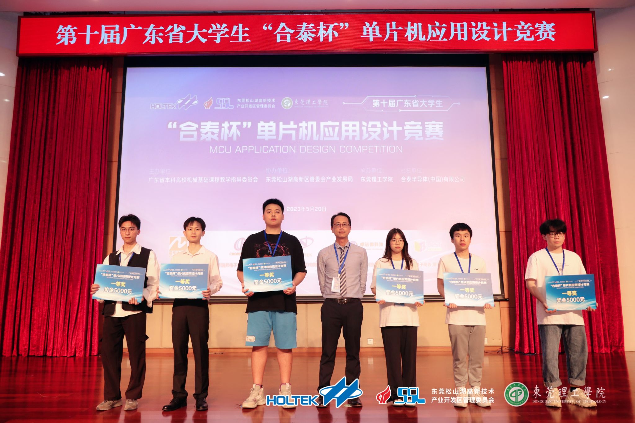科技引领未来,创新驱动发展。2023年5月20日,由广东省本科高校机械基础课程教学指导委员会主办,东莞理工学院承办,东莞松山湖产业发展局协办,合泰半导体(中国)有限公司冠名,华瑞昇电子(深圳)有限公司、新鼎电子(深圳)有限公司、诺华达电子(深圳)有限公司、深圳市卓芯微科技有限公司、倍易创新电子商务(厦门)有限公司共同赞助支持的第十届广东省大学生“合泰杯”单片机应用设计竞赛决赛在东莞理工学院松山湖校区学术会议中心报告厅拉开序幕。