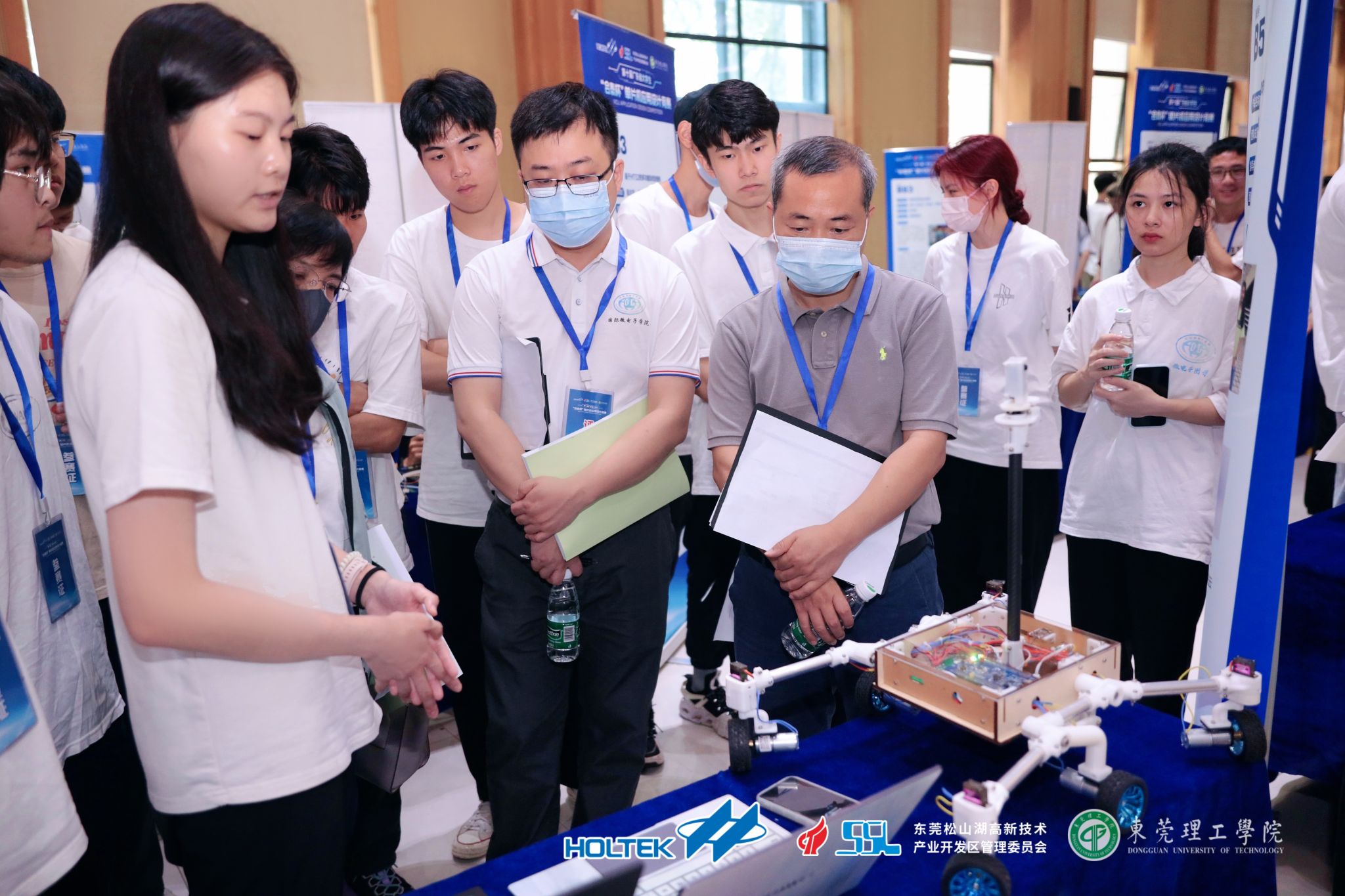 开幕式结束后,参赛选手回到展位,对作品进行了安装、调试,等待评委老师的评审。