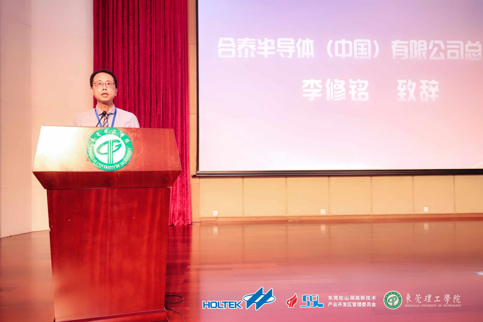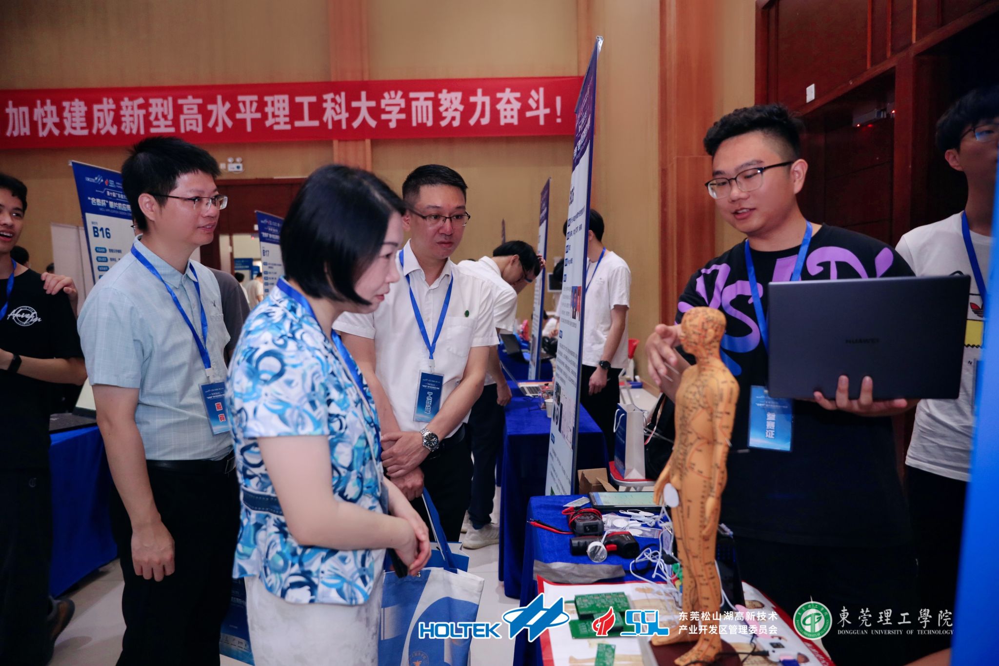 东莞理工学院党委委员、宣传部部长邹琼,合泰半导体(中国)有限公司总经理李修铭,广东省机械基础课程教学指导委员会副主任成思源、王红军,东莞理工学院球天下体育