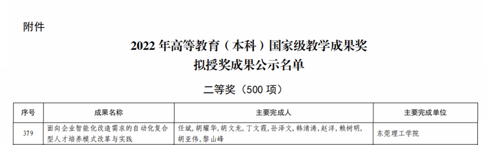 任斌教授主持的《面向企业智能化改造需求的自动化复合型人才培养模式改革与实践》获二等奖。