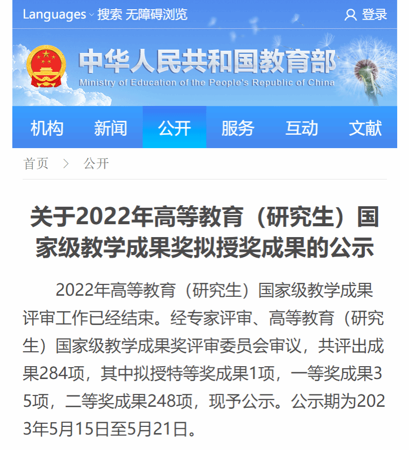 近日,2022年高等教育(本科)国家级教学成果奖公示完毕,由球天下