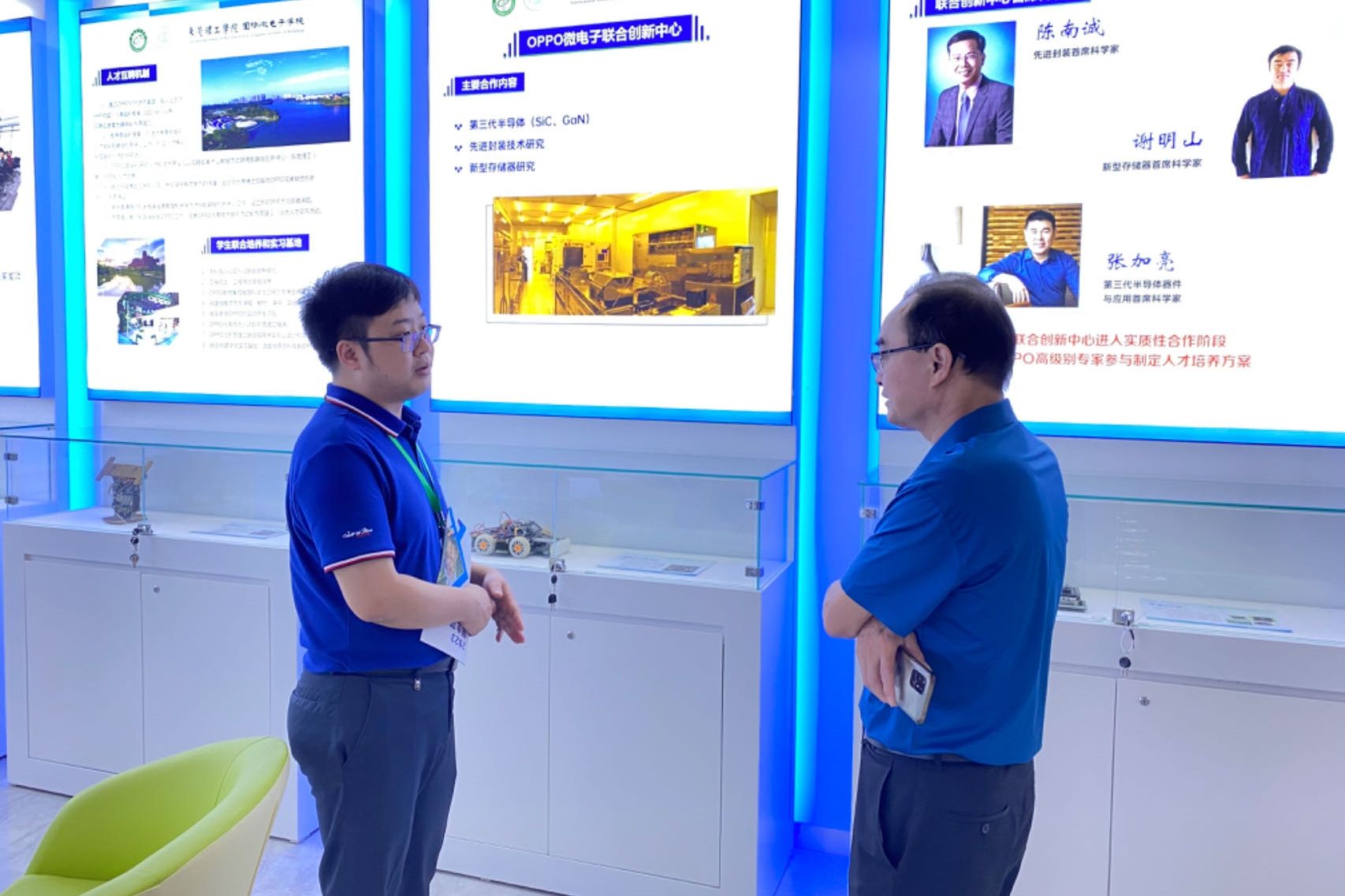 学院依托校园开放日活动,面向公众开放了超净间实验室、仿真实验室、半导体物理与器件实验室等多间实验室,并安排专任教师和志愿者进行讲解。老师们为来访学生和家长介绍了半导体科学的发展历史及研究现状,介绍了芯片的基本知识与广泛应用。学生和家长参观了有关实验室的成果展示,感受了半导体产业发展、人工智能应用技术的神奇科技魅力。