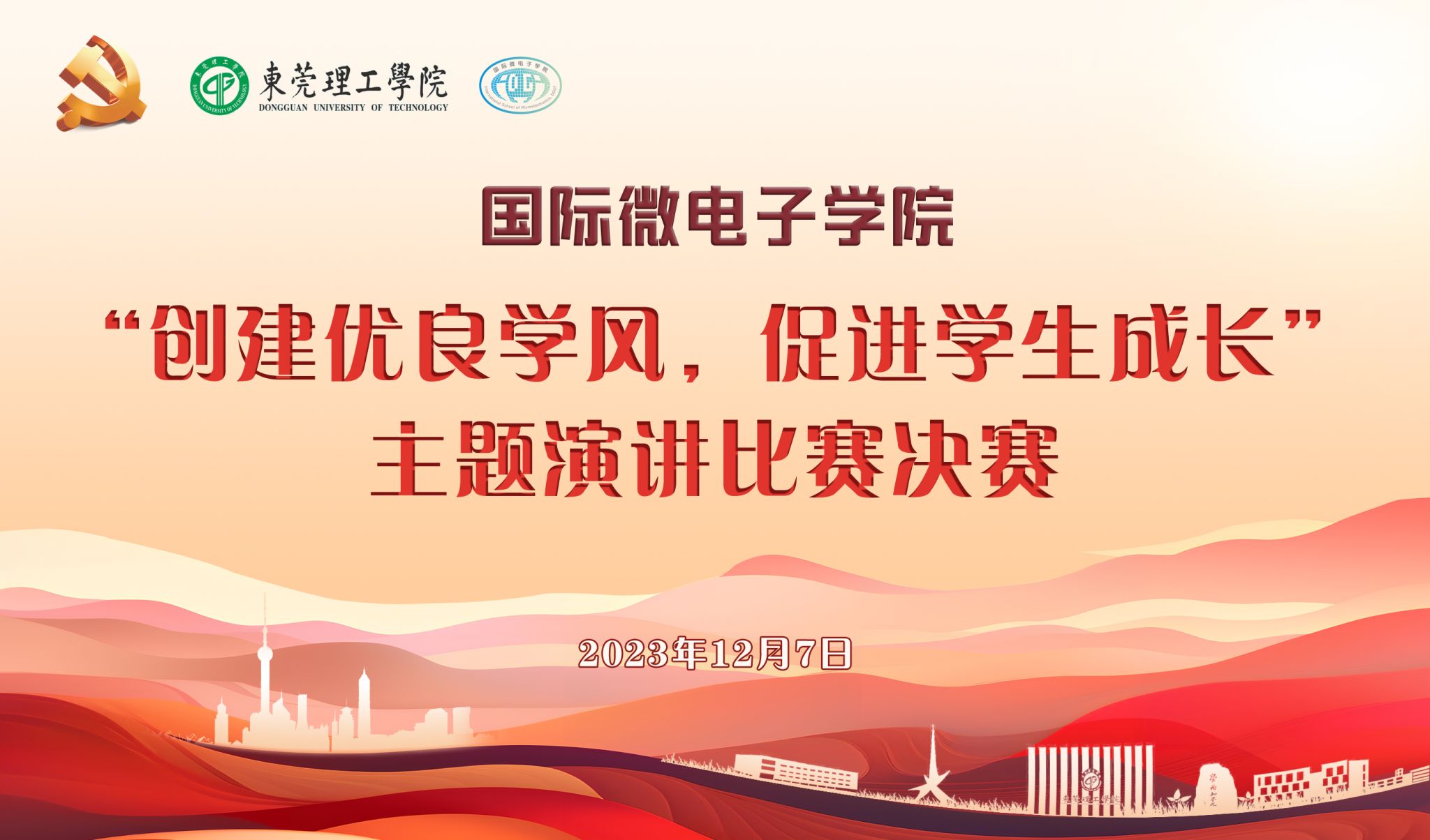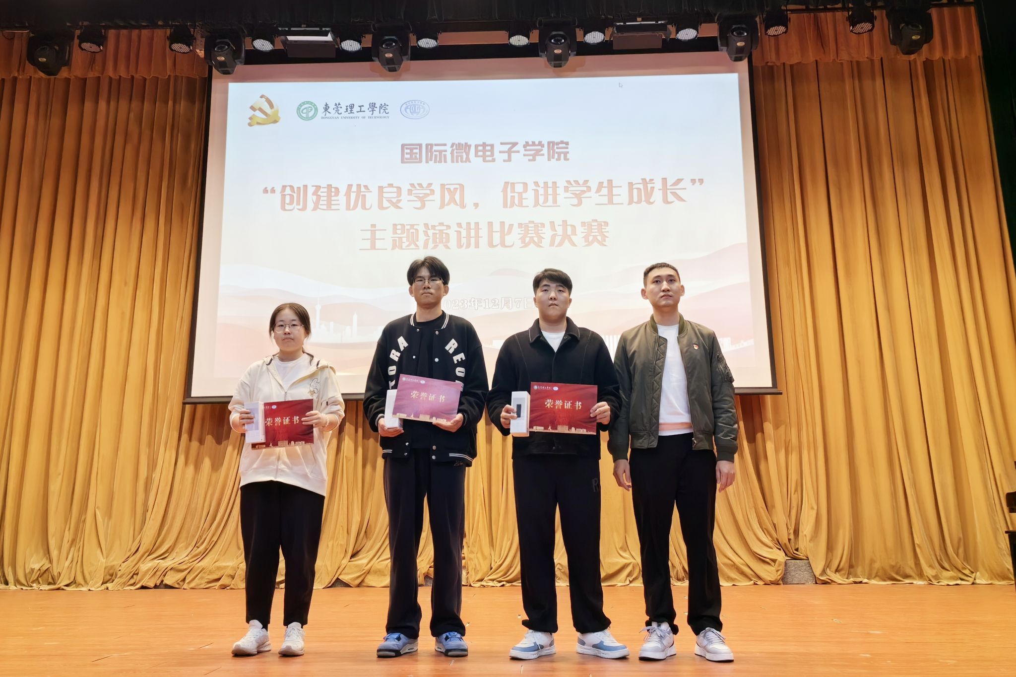 于2023年12月7日晚在学生活动中心小剧场举办“创建优良学风,促进学生成长”主题演讲比赛决赛。