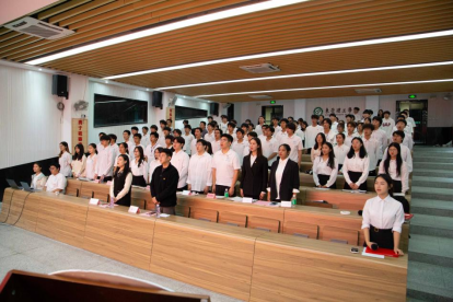 大会第二项议程,由学院团委负责老师卢楚韵讲授团课。